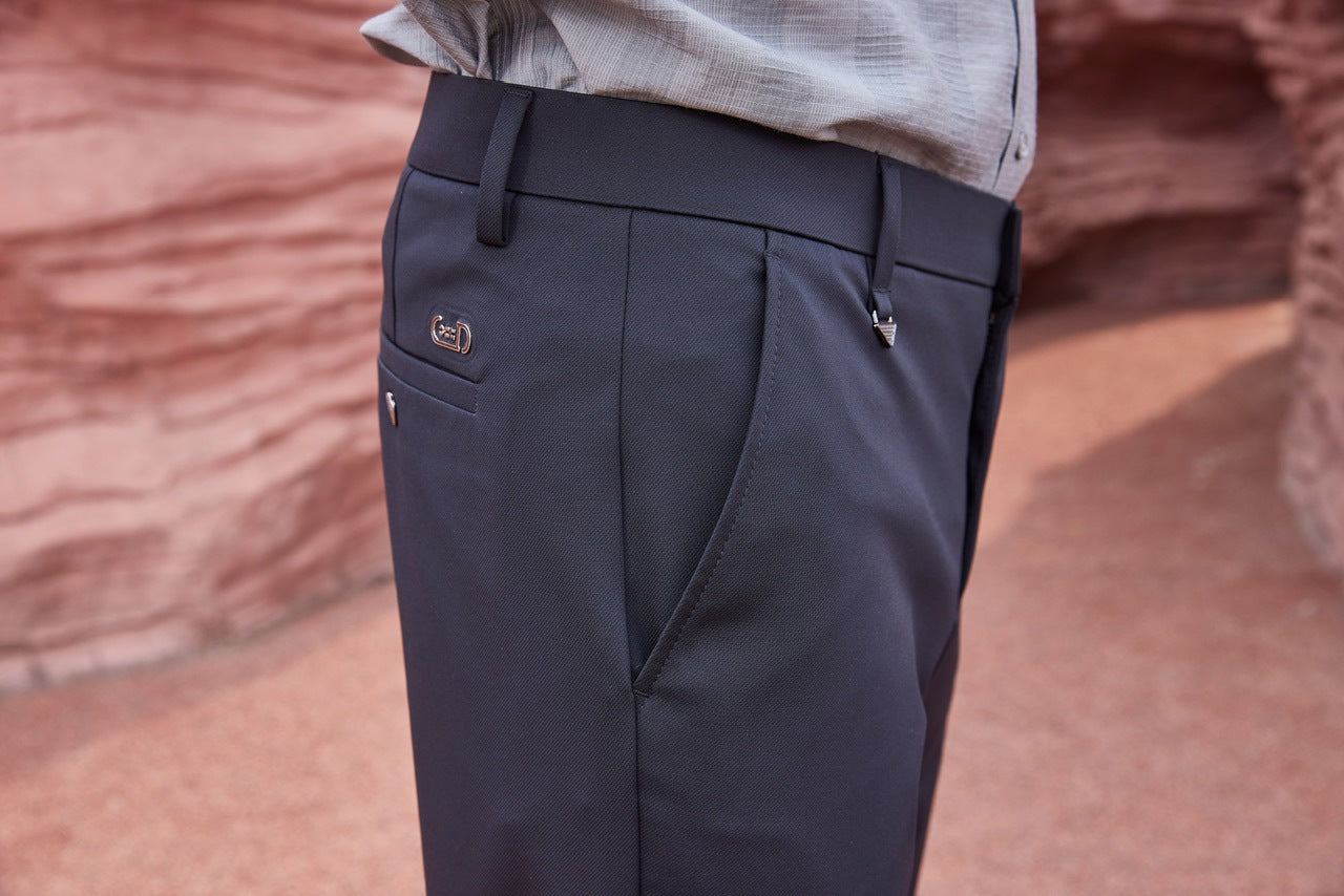 بنطلون قماش رجالي خامة ليكرا - تصميم انيق - جودة الصنع - تفاصيل دقيقة - لون جذاب (Traveling Pants) - ضد التجاعيد