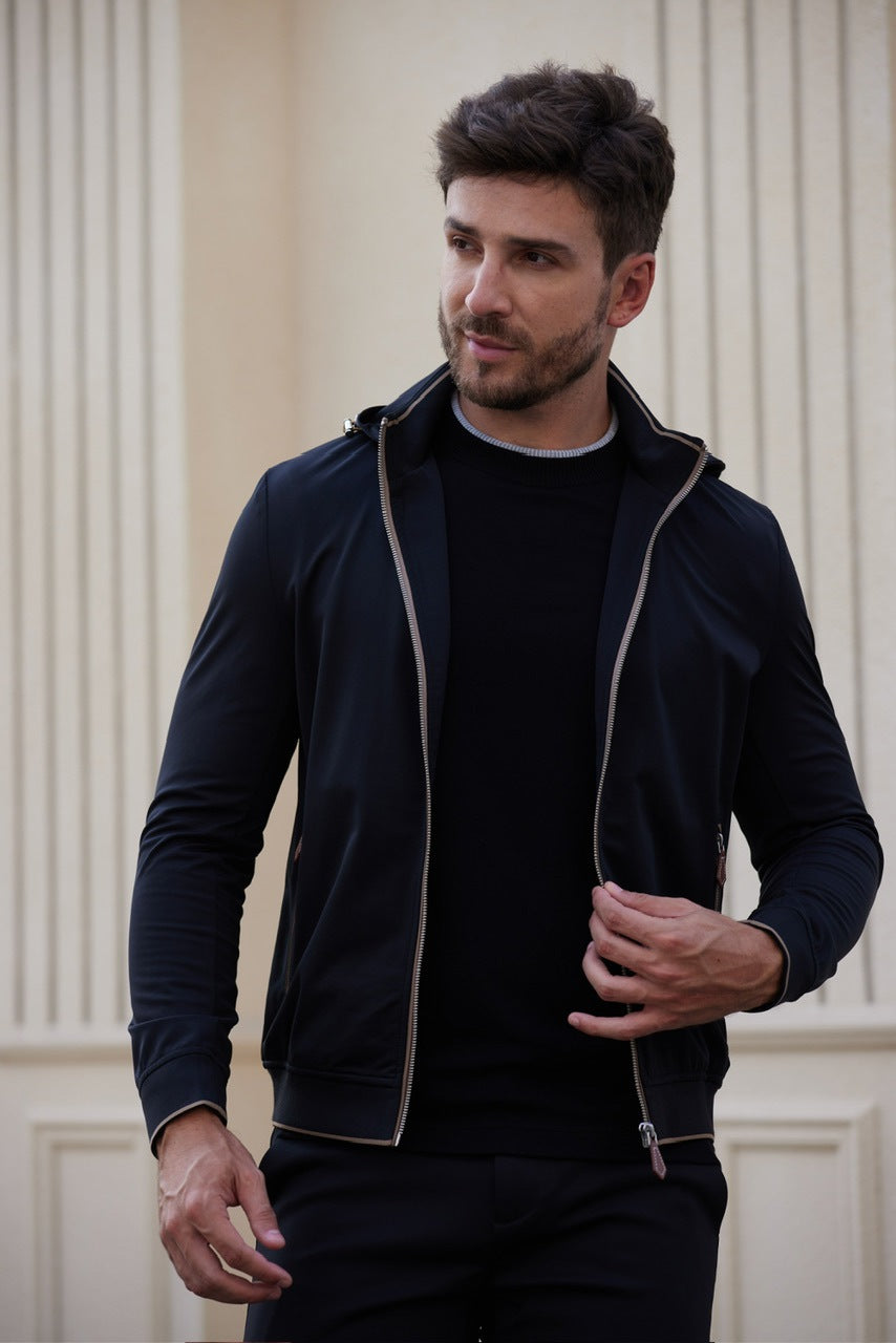 جاكيت رجالي فاخر مصمم لراحة مثالية أثناء السفر. مصنوع من خامة مقاومة للتجاعيد توفر مظهراً أنيقاً دائماً، مع تصميم جذاب يلفت الأنظار. يتميز بغطاء رأس قابل للرفع لتعزيز الحماية والراحة في جميع الأوقات. خيار مثالي للرجل الذي يبحث عن الأناقة والعملية في آن واحد.