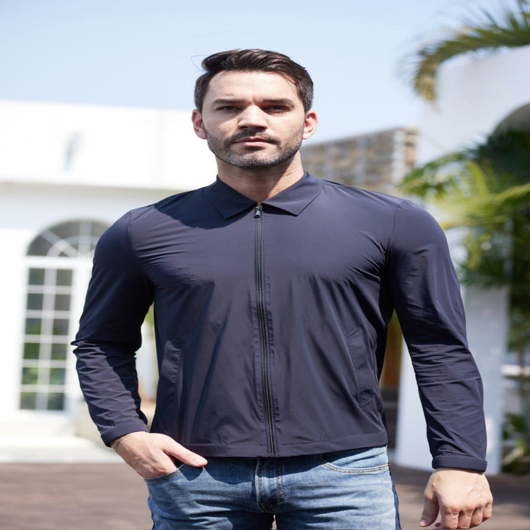 جاكيت رجالي فاخر مصنوع من خامة مبتكرة تجمع بين الراحة والأناقة. يتميز بخصائص مضادة للتجاعيد لتحافظ على مظهرك مرتَّبًا في كل الأوقات، مما يجعلها مثالية للسفر والتنقل. تصميم جذاب يبرز أناقتك بأسلوب ملفت ويناسب كل المناسبات. جاكيت يمنحك حرية الحركة مع راحة تامة طوال اليوم.