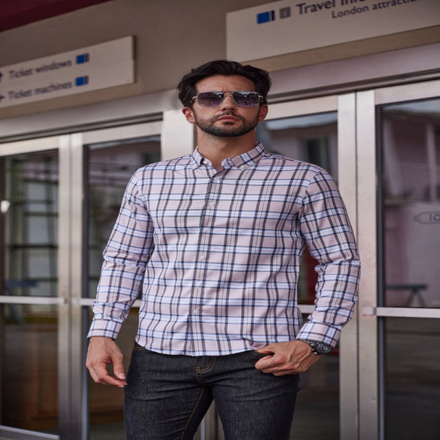 قميص كم رجالي - كاروهات- القالب (Regular Fit)- خامة قطن100% - تصميم جذاب - الوان مميزة - اناقة ملفته